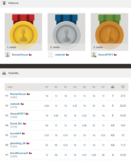Na šachovém serveru "chess.com" se ve středu 29.4.2020 odehrál on-line Krajský přebor v rapid šachu 2020.